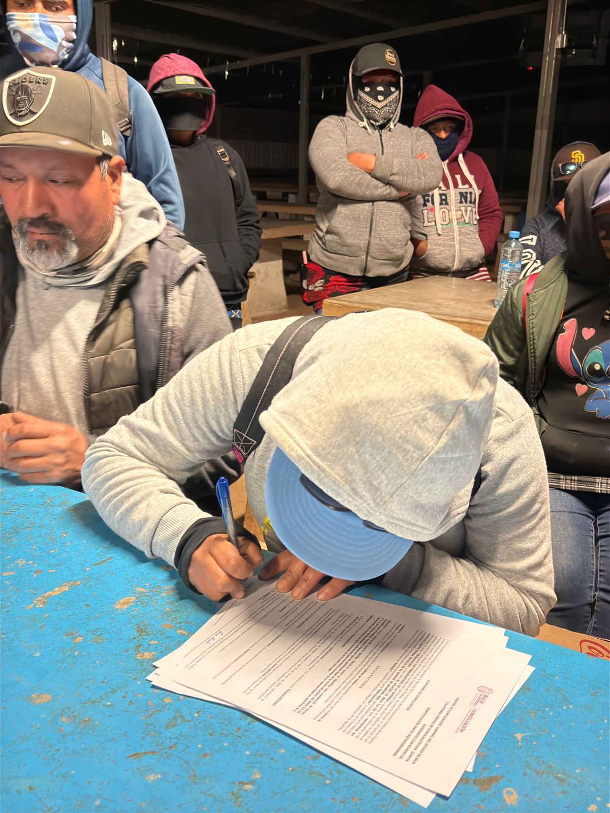 Adicionalmente, realizó la inspección para verificar el cumplimiento los derechos de los trabajadores, de manera que los trabajos de la reunión se orientaron a mejoras que se tendrán al interior del centro de trabajo del rancho “El Milagro”, y cuyos acuerdos se encuentran plasmados en un convenio depositado en el Centro de Conciliación Laboral del municipio de San Quintín.