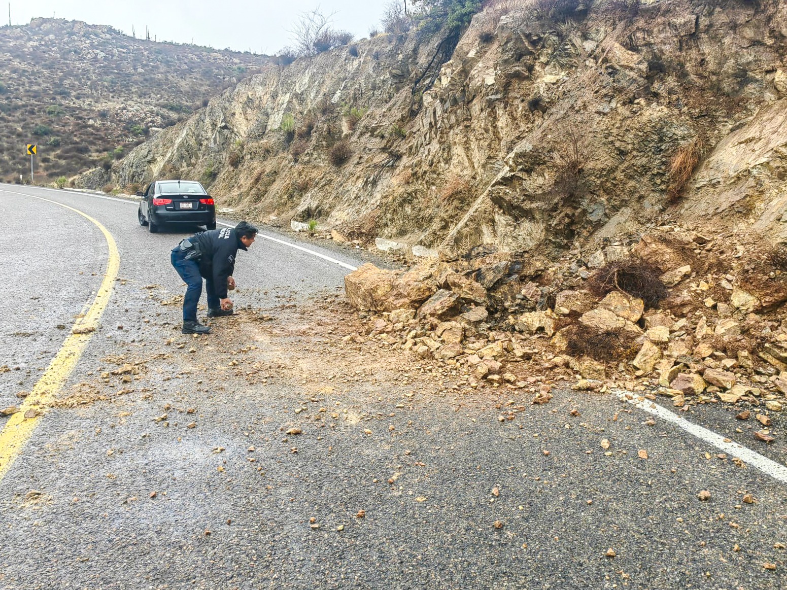 En el kilómetro 74, un derrumbe de rocas bloqueó parcialmente el carril en dirección norte-sur. Sin embargo, gracias a la rápida intervención del personal de la Delegación El Rosario, el paso vehicular fue restablecido sin mayores complicaciones. Las autoridades exhortaron a los conductores a extremar precauciones ante las condiciones meteorológicas inestables.