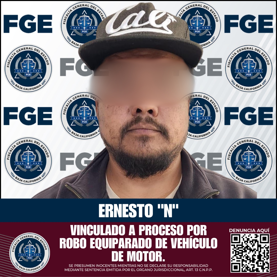 San Quintín 19 de marzo de 2025: La Fiscalía Regional de San Quintín obtuvo la vinculación a proceso de Ernesto «N», por su presunta responsabilidad en el delito de robo equiparado de vehículo de motor, en modalidad de uso.