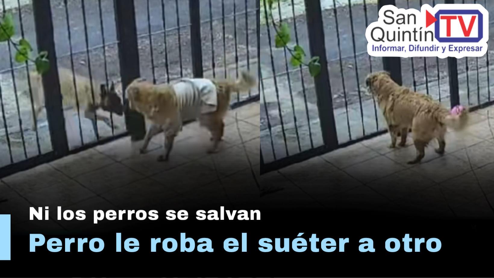 Un video se volvió viral en redes sociales, donde muestran la interacción entre dos perros, pues uno de los despojó a otro de un suéter y huyó con la prenda.